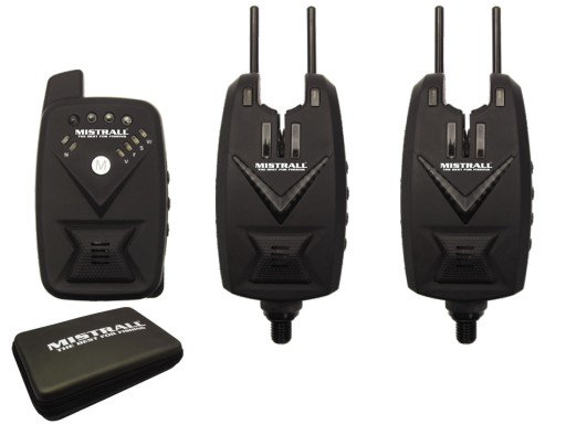 Bezprzewodowa, wodoodporna centralka z górnej półki, znanej i cenionej firmy Mistrall. Zaprojektowana specjalnie dla karpiarzy łowiących na dwie wędki. Sygnalizacja brań dźwiękowa, świetlna oraz wibracyjna. Sygnalizatory posiadają regulacje głośności, czułości oraz tonów, posiadają pamięć ostatniego brania, zaopatrzone są w wyjścia pod swingery i hangery. Pracują zarówno w trybie dziennym jak i nocnym z dodatkowym podświetleniem. Sygnalizatory dodatkowo wyposażone są w ograniczniki mające chronić wędki przed wypadaniem. Pilot zaopatrzony jest w regulację głośności, tonów oraz wibrę. Centralka i sygnalizatory zasilane są bateriami (3 x AAA - centralka oraz 9V 6LR61 x 1 sygnalizator), dzięki czemu uzyskano najlepszy z możliwych stosunków energooszczędności i zasięgu bezprzewodowego. Zestaw zapakowany jest w elegancką walizkę wyściełaną antywstrząsową gąbką. Centralka w rzeczywistości wygląda rewelacyjnie !!!