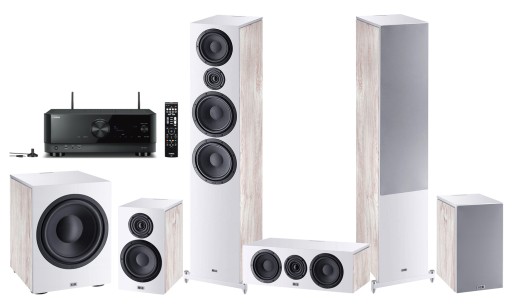 AMPLITUNER YAMAHA RX-V4A (czarny) + Zestaw kolumn 5.1 Heco Aurora 1000 w kolorze białym