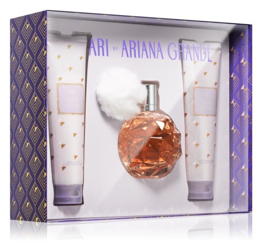 Pobłażliwy Ari zestaw zapachowy to 100 ml butelka wody perfumowanej, 100 ml mleczko do ciała i 100 ml żel pod prysznic.