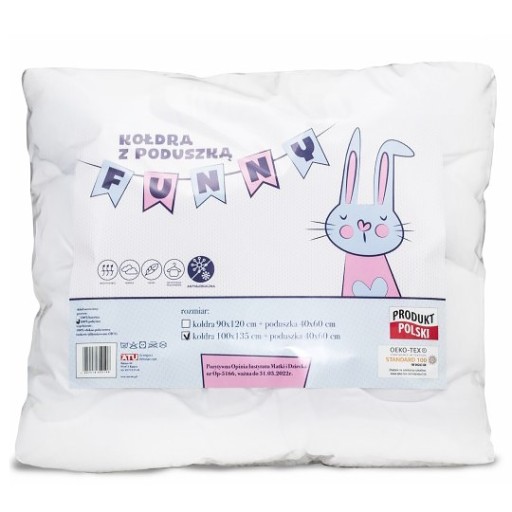 Komplet FUNNY jest miękki, lekki i puszysty a zastosowanie nowoczesnej technologii do produkcji wypełnienia sprawia, że produkty są przyjazne alergikom, zapewnia najwyższy komfort snu i jest łatwy do utrzymania w czystości.
