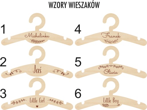W przypadku braku podania wzoru oraz czcionki, otrzymacie Państwo wieszaczek z losowo wybranym wzorem.
