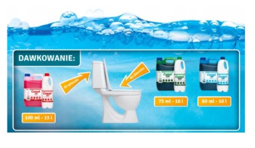 Campi Blue to skoncentrowany płyn, rozkłada zawartość w zbiornikach na fekalia w przenośnych toaletach oraz stałych urządzeniach toaletowych w przyczepach kempingowych i na jachtach.