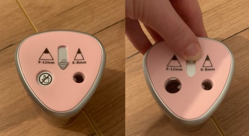 ✅ Temperówka wyposażona w przysłonę uniemożliwiającą włożenie palca przez małe dzieci. W celu zwolnienia blokady z dużego otworu, należy przesunąć środkowy suwak. Umożliwia to ostrzenie grubszych kredek JUMBO.