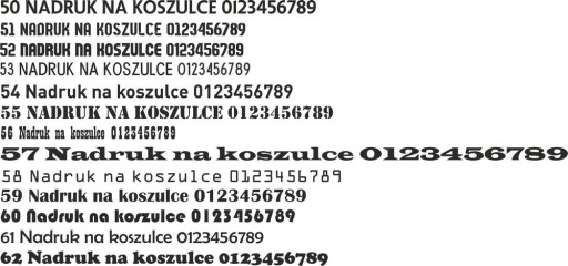 - W ofercie przestawiliśmy przykładowe czcionki do wyboru, lecz jeśli chcesz abyśmy wykonali nadruk Twoją czcionką wyślij nam ją na e-mail w formacie TTF