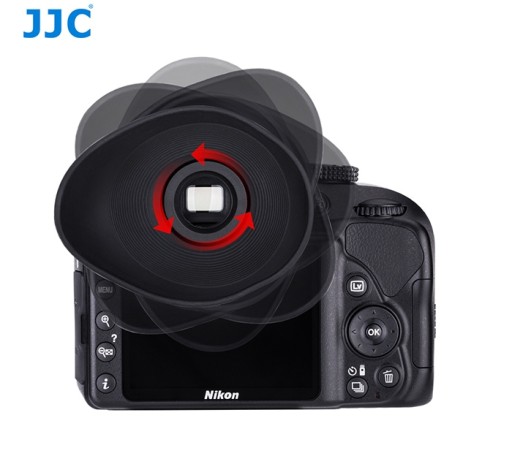 Muszla oczna firmy JJC Może zostać w sposób szybki obrócona stając się idealną również dla tych, co patrzą w wizjer lewym okiem.