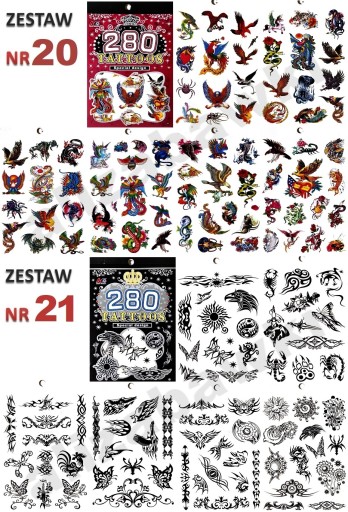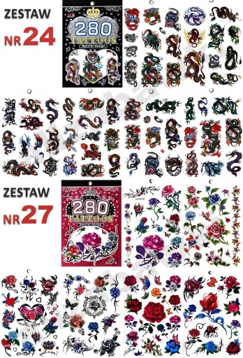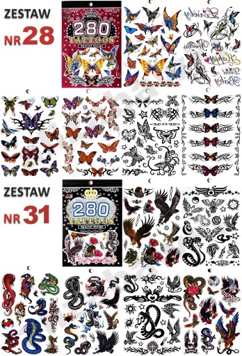 Każdy zestaw zawiera mnóstwo wspaniałych naklejek do ciała - tymczasowych tatuaży