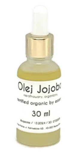 OLEJ JOJOBA ZIMNOTŁOCZONY, NIERAFINOWANY, ORGANICZNY SZKLANA BUTELKA Z PIPETĄ I REDUKTOREM