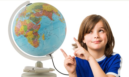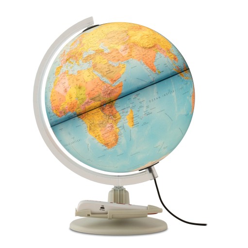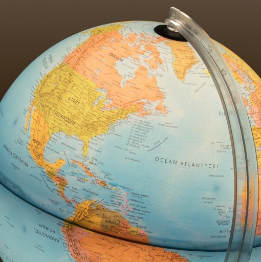 - posiada kulę o 30 centymetrach średnicy z mapą polityczną świata z rzeźbą terenu