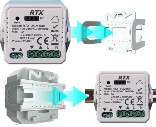 - Można wbudować pod tradycyjne przełącznik lub zamocować na szynie DIN w rozdzielni prądu
