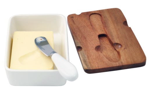 Akacjowa pokrywka wydłuża świeżość masła i sera.