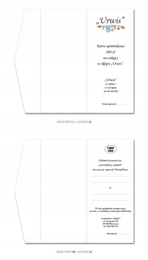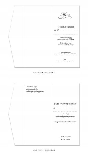 - do wyboru 13 układów tekstu lub własny tekst