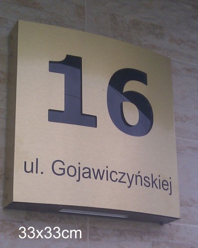 Tablica adresowa z serii tablic wypukłych została zaprojektowana przez naszych inżynierów z myślą o połączeniu maksymalnej widoczności za dnia i nocy z ponadczasowym designem. Front tablicy wykonany jest z błyszczącego i wytrzymałego kompozytu aluminiowego. Wycięcie numeru z plexi stwarza efekt 3D który podnosi czytelność numeru. Nazwa ulicy i podkreślenia są wykonywane z wysokogatunkowej foli odpornej na warunki atmosferyczne. Tył tablicy wykonany jest z malowanego proszkowo aluminium, zastosowanie aluminium podnosi sztywność i wytrzymałość tablicy. W sprzedaży dostępne są wersje z podświetleniem LED i czujnikem zmierzchu.