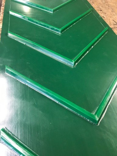 Posiadamy taśmy przenośnikowe tkaninowo-gumowe , PCV , poliuretanowe , taśmy spożywcze , modułowe . Docinamy na wymiar , grubości od 1mm do 16mm . Łączymy taśmy w obwód prasą na gorąco lub spinkami metalowymi. Montujemy zabieraki progowe ,falbany boczne, kliny prowadzące . Cena brutto dotyczy 1m2 taśmy grubości 1mm .