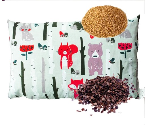 Poduszka posiada poszewkę 100% bawełna zapinaną na zamek oraz wsyp wypełniony ekologiczną łuską gryki i gorczycą również zapinany na zamek. W łatwy sposób umożliwia to dostosowanie wysokości poduszki do potrzeb dziecka