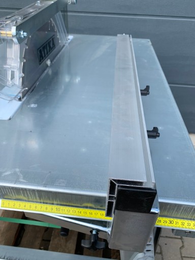 - Stabilny ogranicznik równoległy wyposażony w blokadę i skalę na blacie wyrażona w mm