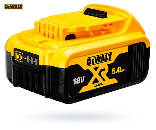 - Nowy akumulator 5,0 Ah XR Li-Ion DEWALT o 66% dłuższym czasie pracy niż standardowy akumulator 3,0 Ah