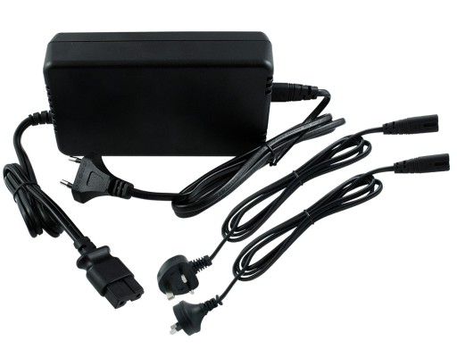 W zestawie znajdziemy zasilacz z końcówka do kompresora oraz 3 przewody zasilające z różnymi typami wtyczek europejska oraz 2 angielskie z uziemieniem i bez uziemienia.