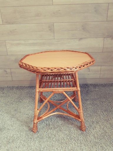 STOLIK Z WIKLINY, BLAT Z PŁYTY MDF - OŚMIOKĄTNY