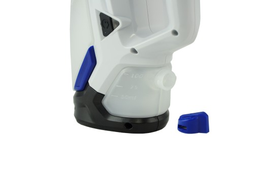 Myjka posiada wbudowany pojemnik na detergent o pojemności 100ml wraz ze spryskiwaczem, którego dysza znajduje się tuż pod zgarniaczką. Natomiast umieszczony w rękojeści przycisk do spryskiwacza pozwala obsługiwać urządzenie jedną ręką, co zwiększa komfort i znacząco przyspiesza pracę.