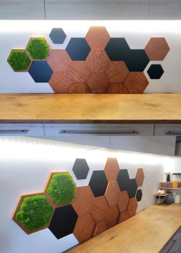 Przedmiotem sprzedaży jest zegar drewniany w formie sześciokąta foremnego, kompatybilny ze wszystkimi panelami SkotiWood w rozmiarze XL.