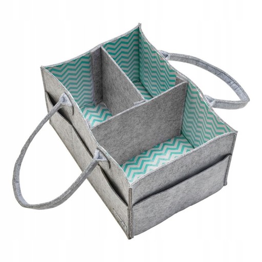 Wszystko co potrzebujesz dla swojego malucha w jednym miejscu. Dzięki temu praktycznemu organizerowi zawsze będziesz mieć wszystko pod ręką i nie będziesz tracić czasu na zbędne szukanie niezbędnych rzeczy. Torba jest estetycznie wykonana z usztywnionego miłego w dotyku filcu przez co jest pięknym dodatkiem do pokoju dziecięcego. Organizer jest bardzo pojemny i posiada szereg kieszeni i przegródek dzięki czemu pomieści wszystkie akcesoria Twojego dziecka. Torba posiada wzmocnione, usztywniane ścianki dzięki czemu zachowuje swój kształt i wygląda estetycznie.