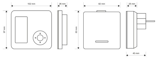 - Sposób montażu: regulator-podstawka / odbiornik-gniazdko 230 V 50 Hz