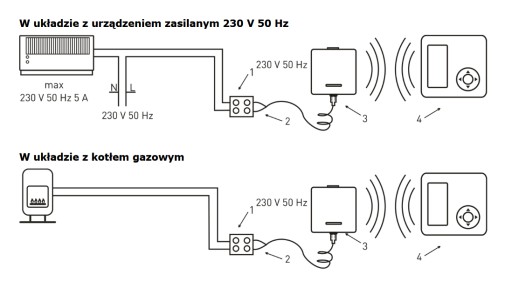 - Maksymalne obciążenie: 5 A 230V 50 Hz
