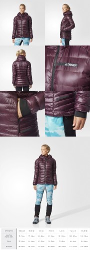 - Materiał - warstwa wierzchnia: tkanina ripstop, 100% nylon; wypełnienie: wyściełanie, 90% gęsi puch / 10% pierze