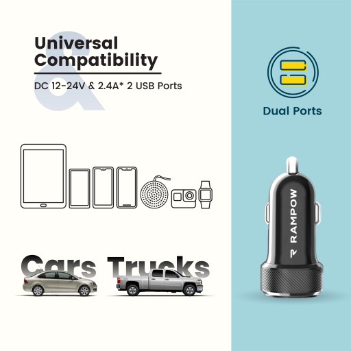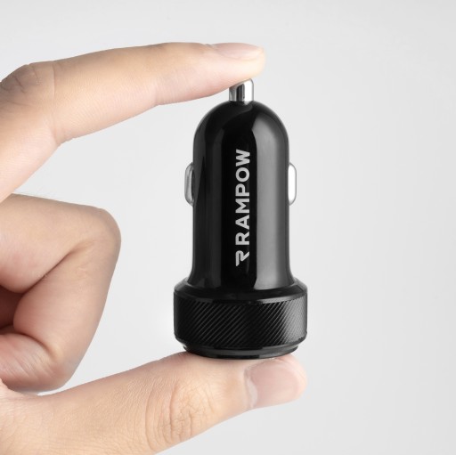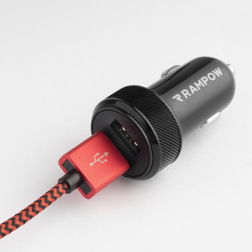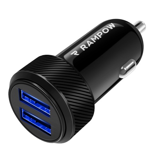 Wysokiej jakości ładowarka samochodowa 2x2,4A innowacyjnej firmy Rampow.