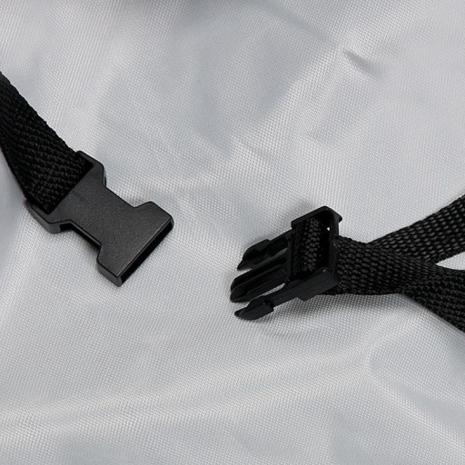 Pokrowiec został wykonany w 100% z poliestru Oxford 300D, co zapewnia dużą wytrzymałość oraz długi okres użytkowania.