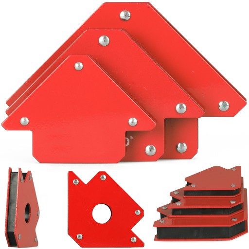 Kątowniki pomocne w spawaniu, montażach elementów metalowych,lutowaniu, trasowaniu oraz ewentualnie podnoszeniu elementów stalowych. Silny magnes o dużej powierzchni obudowany metalowymi płytkami, który umożliwi precyzyjne i trwałe ułożenie materiału pod kątem 45, 90 lub 135 stopni, a dzięki dużej sile przyciągania zapewni stabilną, nieruchomą pozycję.