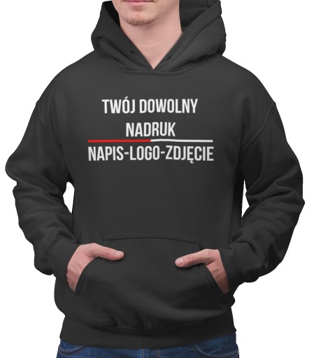 Bluza z własnym nadrukiem z kieszenią typu kangur i sznurkiem w kolorze bluzy.