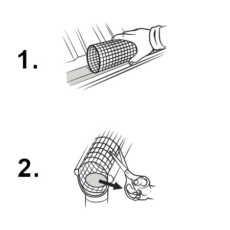 Krok 1. Przytnij siatkę do żądanego rozmiaru, delikatnie ściśnij i umieść w rynnie. Zalecamy, aby siatka była zawsze nieco szersza od rynny, co zapobiegnie zaleganiu liści między siatką a rynną.
