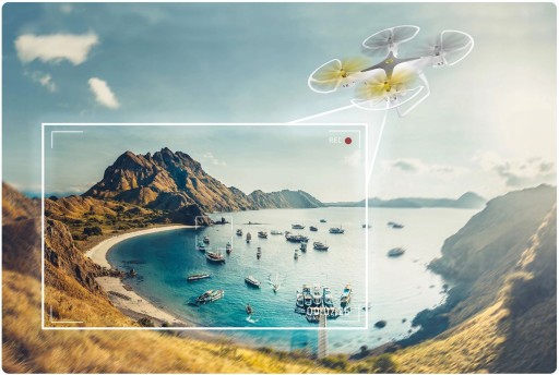 Obraz z kamery możesz w czasie rzeczywistym oglądać na ekranie swojego smartfona dzięki funkcji FPV . Dzięki temu możesz za każdym razem podziwiać niesamowite podniebne widoki