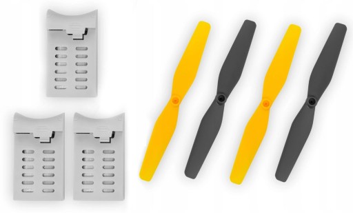 Zestaw został wyposażony w dodatkowe 4 śmigła , trzy baterie akumulatorowe , ładowarkę USB z możliwością ładowania wszystkich akumulatorów jednocześnie , zapasowe śrubki oraz śrubokręt , aby Twoja zabawa nigdy nie została przerwana przez nieprzewidziane zdarzenie
