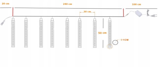 -długość kabla świecąca 2,4 m , długość kabla zasilającego/łączącego 1 m