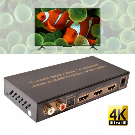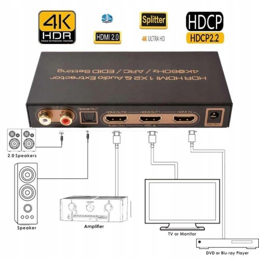 Splitter HDR 4K HDMI 1x2 z ARC, EDID, Audio SPDIF + RCA