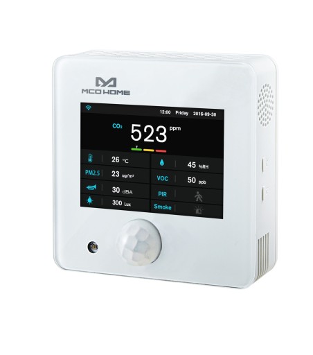 Mulit-sensor MCO Home 9 w 1 to urządzenie, w którym wbudowanych jest 9 różnych sensorów. Posiada 3,5 calowy wyświetlacz TFT. Urządzenie zgodne ze standardem Z-Wave Plus.