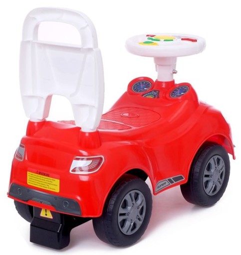 Jeździk wykonany jest z trwałego, mocnego plastiku o żywej kolorystyce. Skrętne przednie koła z blokadą kąta skrętu dla zapewnienia bezpieczeństwa dziecka, a klakson w kierownicy urozmaici zabawę. Jeździk nadaje się do zabawy zarówno w domu jak i na podwórku.