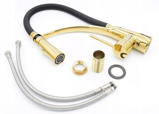 1️⃣NEXO ZŁOTA bateria kuchenna z wyciąganą wylewką i dwufunkcyjną słuchawką