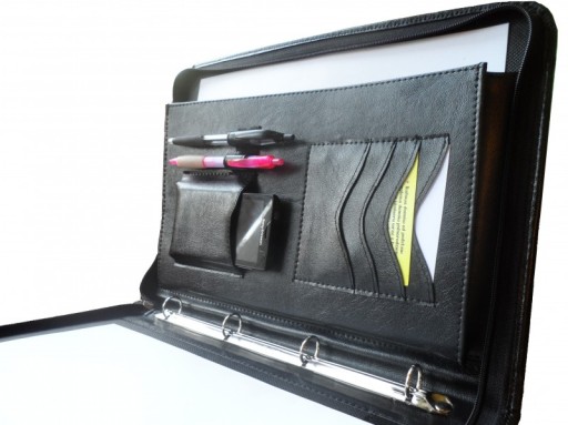 Aktówka posiada kieszonkę na kalkulator lub telefon, oraz piórnik na 2 długopisy i wizytownik.