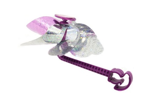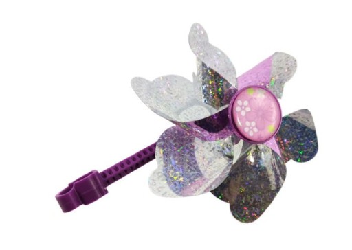 Kolorowy wiatraczek, mieniący się, mocowany do kierownicy rowerka, bądź hulajnogi za pomocą obejmy.