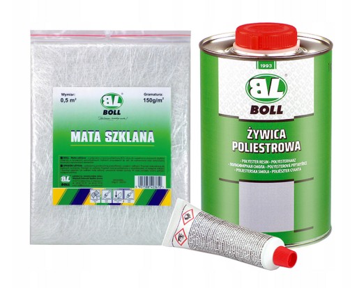 BOLL Żywica poliestrowa jest to środek, który w połączeniu z matą lub tkaniną szklaną służy do wypełniania znacznych ubytków materiału w karoseriach samochodowych, łodziach, przyczepach itp. jak i do wzmacniania i usztywniania konstrukcji naprawianych elementów.