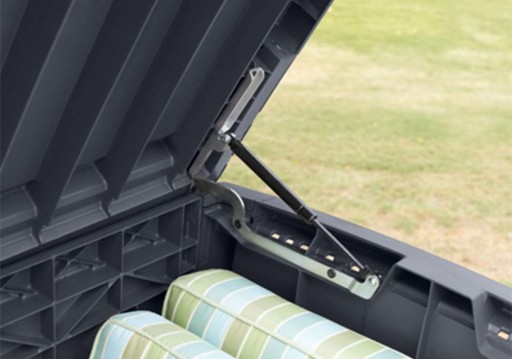 Skrzynia ogrodowa KETER Java Box mimo swoich niewielkich rozmiarów (147 x 83 x 86 cm) imponuje swoją pojemnością, wynoszącą aż do 870 litrów. Praktyczny schowek pomieści wszystkie niezbędne akcesoria ogrodowe, ale znajdzie się też miejsce dla zabawek Twojego dziecka czy dla poduszek z mebli ogrodowych. Dodatkowym atutem produktu są siłowniki gazowe, które odpowiadają za wygodne otwieranie i zamykanie skrzyni, ale zapewniają też bezpieczeństwo – dzięki nim skrzynia sama się nie zamknie.