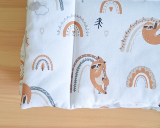 Jedna strona biała w leniwce i tęcze (100% bawełna premium), druga jasna szara (100 % bawełna).
