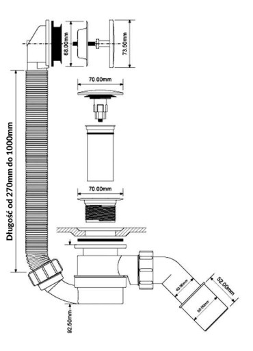 - Zestaw odpływowo-przelewowy do wanny i głębokiego brodzika umożliwiający czyszczenie od góry