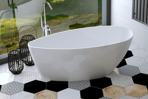 Wanna wolnostojąca w kolorze biały połysk o długości 159 cm z konglomeratu marmurowego.