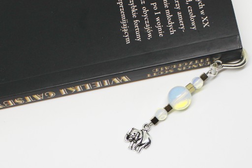 Elegancka zakładka do książki z zawieszką w kształcie słonia z dodatkiem opalitu.