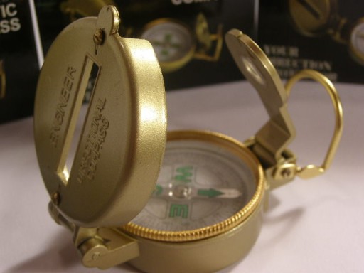 Wypełniony płynem, bardzo szybko ustawia się na pozycję określającą prawidłowy kierunek. Posiada tarczę z kierunkami świata oraz punkty namiarowe, co znacznie ułatwia odczytanie kierunku. Fluorescencyjne wskazówki umożliwiają odczyt kierunku również po ciemku.