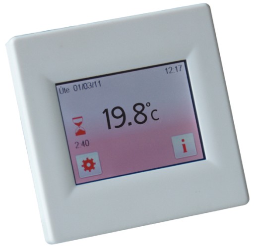 TERMOSTAT DOTYKOWY TFT PRODUKOWANY PRZEZ GRUPĘ FENIX PRZEZNACZONY DO OGRZEWANIA PODŁOGOWEGO I ELEKTRYCZNEGO W PODCZERWIENI.